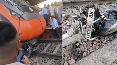 वंदे भारत ट्रेन और बाइक सवार के बीच टकराव टला, यात्रियों को झटका लगते ही हड़कंप मच गया