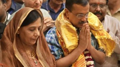 Arvind Kejriwal और Manish Sisodia ने हनुमान मंदिर में टेका माथा