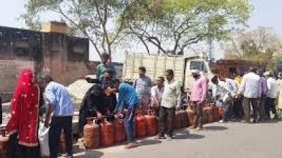गैस एजेंसियों के बाहर एक किलोमीटर तक लंबी कतारें लगीं