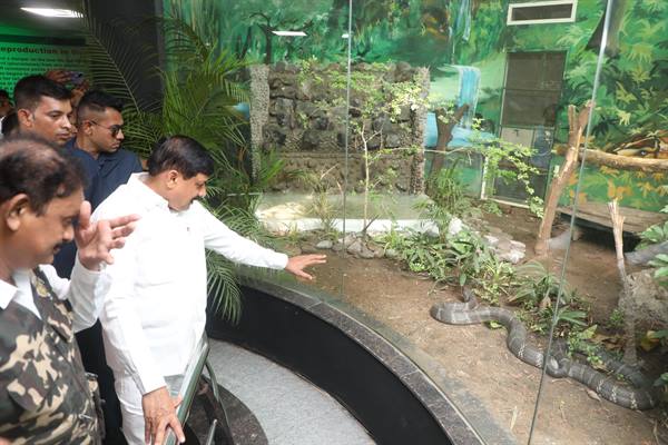 मुख्यमंत्री डॉ. यादव ने कर्नाटक के पीलीकुला बायोलॉजिकल पार्क से लाए गए किंग कोबरा (मेल) को स्नैक पार्क में छोड़ा। इंदौर किंग कोबरा का प्राकृतिक आवास नहीं है। मुख्यमंत्री डॉ. यादव ने चिड़ियाघर प्रबंधन द्वारा किंग कोबरा (मेल) के लिए बनाए गए आवास की सराहना की।