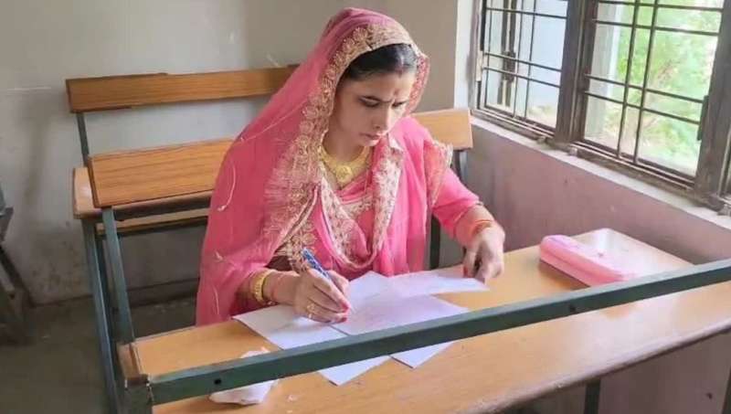 पिंक साड़ी-सोने का हार पहन एग्जाम हॉल पहुंची MLA मैडम, BSW की परीक्षा देती नजर आईं