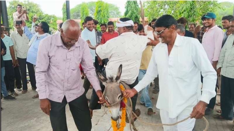 गधे पर उल्टा बैठाकर कराई परिक्रमा