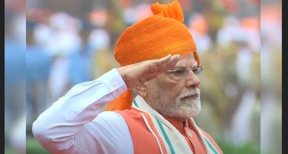 79th Independence Day: देश आज अपना 79वां दिवस मना रहा है। इस अवसर पर प्रधानमंत्री नरेंद्र मोदी (PM Modi) ने ऐतिहासिक लाल किले की प्राचीर पर तिरंगा फहराया। इस बार भी पीएम मोदी खास लुक में नजर आए। उन्होंने इस बार केसरिया रंग का साफा पहना, जो साहस और बलिदान का प्रतीक माना जाता है। इसके साथ उन्होंने सफेद कुर्ता-पायजामा और नारंगी रंग का नेहरू-कट जैकेट पहन अपने लुक को पूरा किया।