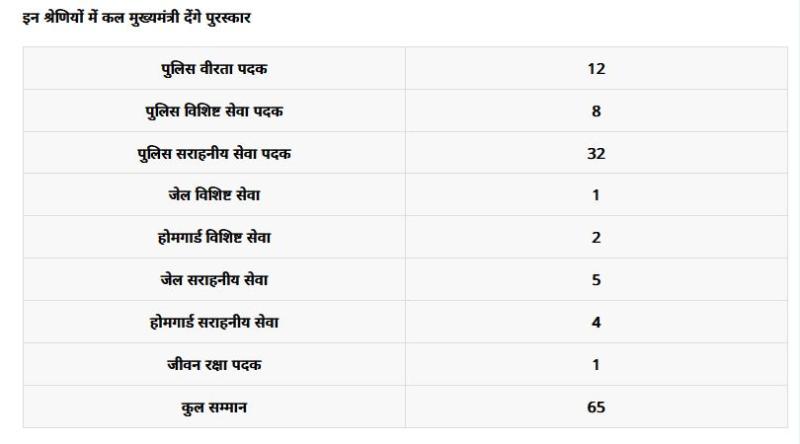 केंद्रीय ग्रह मंत्रालय द्वारा जिन पुलिस अफसरों और कर्मचारियों को राष्ट्रपति वीरता, विशिष्ट सेवा और सराहनीय सेवा पदक से सम्मानित किया जाता है. इन सभी को 15 अगस्त को मुख्यमंत्री के हाथों सम्मानित किया जाता है. पिछले वर्ष यानि 14 अगस्त 2024 को जिन 65 पुलिस अधिकारियों और कर्मचारियों को पदक देने की घोषणा हुई थी, उनको कल मुख्यमंत्री डॉ. मोहन यादव लाल परेड ग्राउंड में सम्मानित करेंगे.