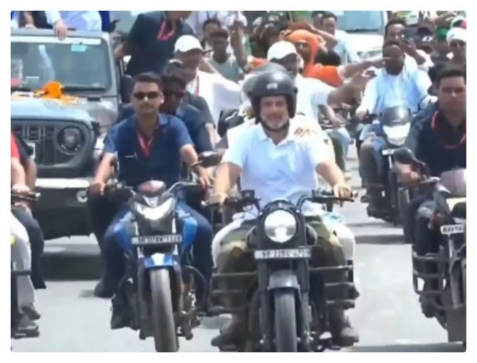 यात्रा के दौरान राहुल ने थामी बाइक की कमान, प्रियंका बनीं साथी