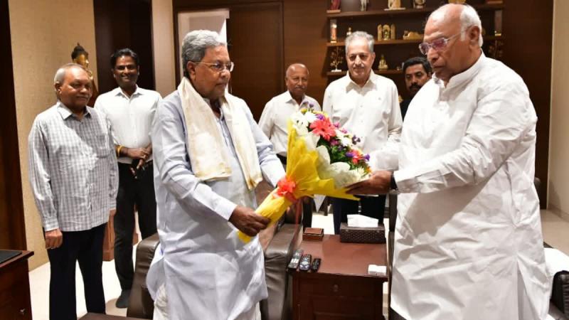 मुख्यमंत्री सिद्धारमैया ने शनिवार रात मल्लिकार्जुन खड़गे से उनके सदाशिवनगर स्थित घर पर मुलाकात कर और दोनों नेताओं ने करीब डेढ़ घंटे तक चर्चा की. सत्ता के बंटवारे पर बहस के बीच दोनों नेताओं की लंबी बैठक ने काफी उत्सुकता पैदा कर दी.
