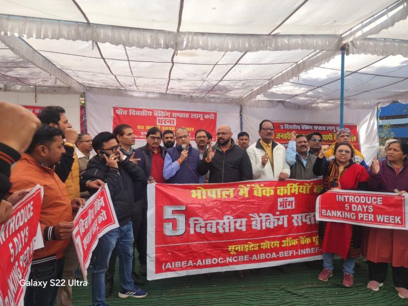 भोपाल में गरजे बैंक कर्मचारी, पाँच दिवसीय बैंकिंग सप्ताह लागू करने की मांग तेज