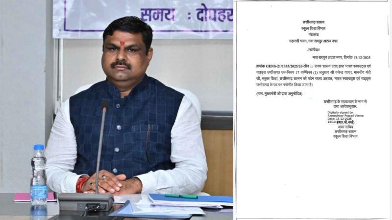 राष्ट्रीय रोवर रेंजर जंबूरी 2026 की तैयारी के बीच स्कूल शिक्षा मंत्री गजेंद्र यादव को परिषद का अध्यक्ष बनने को लेकर शिक्षा विभाग की ओर से 13 दिसंबर को आदेश जारी किया गया था. इस आदेश में कहा गया कि राज्य शासन एतद् द्वारा भारत स्काउट्स एवं गाइड्स छत्तीसगढ़ उप-नियम 17 कण्डिका (1) अनुसार गजेन्द्र यादव, मंत्री स्कूल शिक्षा, छत्तीसगढ़ शासन को पदेन राज्य अध्यक्ष, भारत स्काउट्स एवं गाइड्स छत्तीसगढ़ के पद पर मनोनीत किया जाता है.
