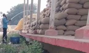 आरंग धान खरीदी केंद्र में धांधली का आरोप, पानी डालकर बढ़ाया जा रहा वजन